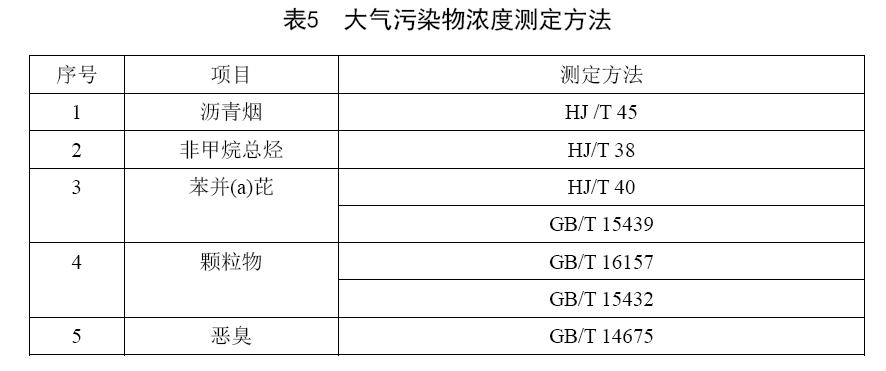 本標(biāo)準(zhǔn)大氣污染物濃度測定方法按表5執(zhí)行。